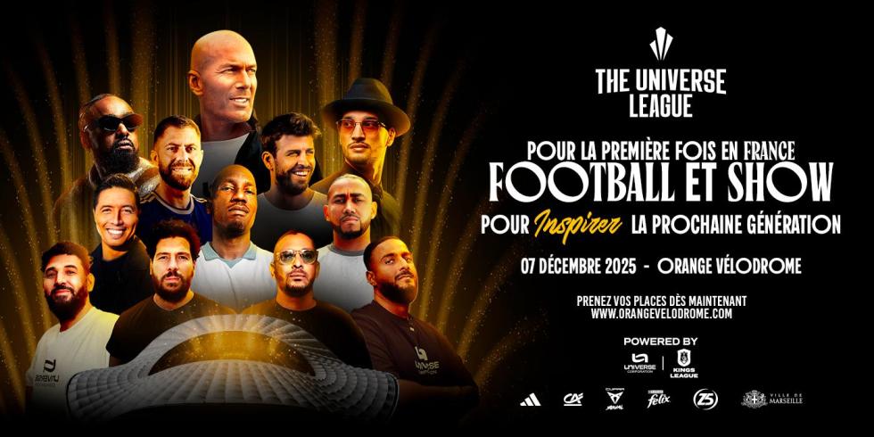Le 7 décembre 2025, l’Orange Vélodrome proposera THE UNIVERSE LEAGUE, un événement aux frontières du football, de la musique et de l’engagement associatif. Pour rappel, l’Universe League est une compétition de football à 7 lancée par Gérard Piqué avec pour ambition de proposer un football spectacle réunissant personnalité du monde sportif et d’internet.